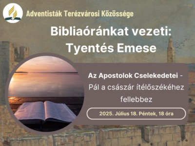 Szeretettel értesítünk arról, hogy ebben az évben november 1–8. között kerül megszervezésre az őszi imahét, amelynek témája: A korszakok reménye. A hét folyamán John Bradshaw lelkész vezet végig minket a Szentírás lapjain egy sor érdekes olvasmányon keresztül, amelyek mind arról szólnak, hogy milyen szerepünk van Jézus csodálatos közeli eljövetelének hirdetésében.