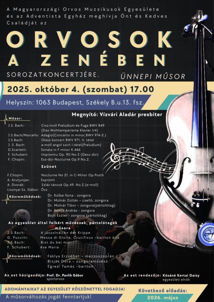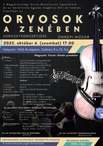 A Magyarországi Orvosmuzsikusok Egyesülete és az Adventista egyház közös szervezésű koncertjére hívunk és várunk szeretettel mindenkit.